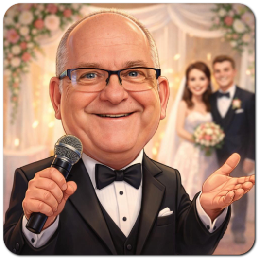 Firstly, A wedding emcee will set the tone and atmosphere of the wedding reception. Mark would be responsible for engaging and entertaining wedding guests, ensuring that everyone is having a good time. A skilled emcee, knows how to read the crowd and adapt their style to keep the energy high and the guests entertained throughout the event. Mark has these skills.